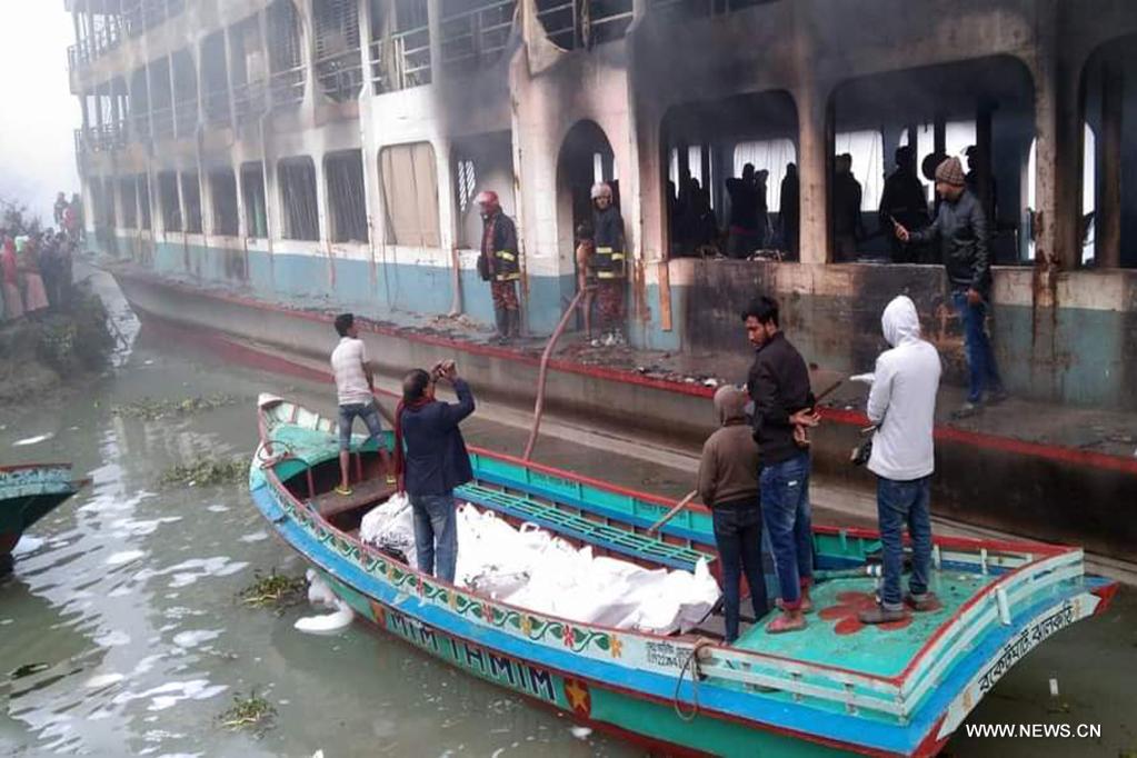 دكا 24 ديسمبر 2021 (شينخوا) لقي ما لا يقل عن 38 شخصا مصرعهم وأصيب 100 آخرون بعد أن اشتعلت النيران في عبَّارة في منطقة جهالوكاتي ببنغلاديش على بعد حوالي 200 كم جنوب العاصمة دكا، في وقت مبكر من اليوم (الجمعة)، وفقا لمسؤول كبير.