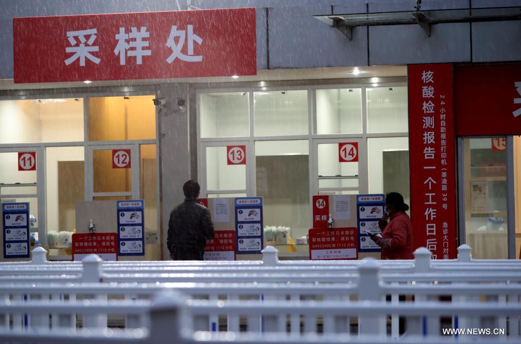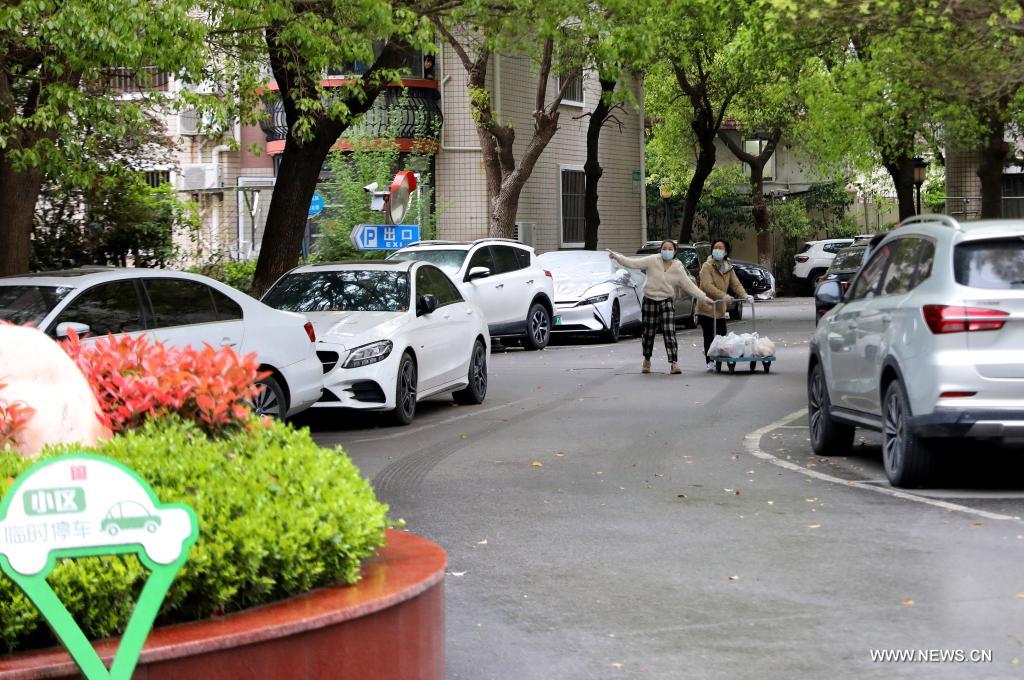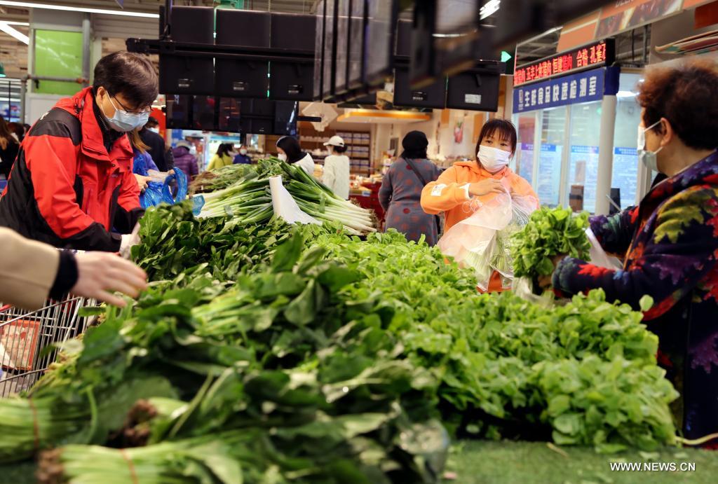 شانغهاي أول أبريل 2022 (شينخوا) في الصورة الملتقطة يوم 31 مارس 2022، مواطنون يشترون الخضراوات من متجر في حي بوتو بشانغهاي شرقي الصين. ستطلق شانغهاي حملة اختبارات الحمض النووي في المناطق الواقعة غربي نهر هوانغبو ابتداء من صباح الجمعة في إطار المرحلة الثانية من الإدارة المغلقة بالمدينة.