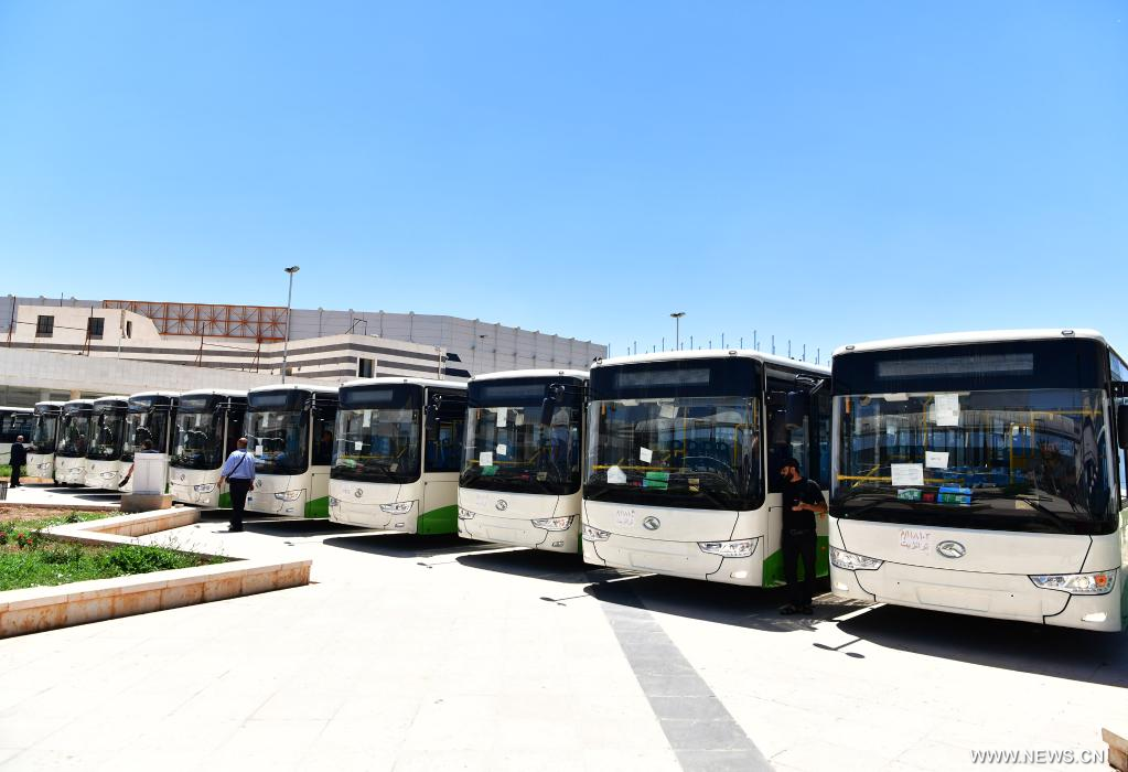 دمشق 29 يونيو 2022 (شينخوا) تسلمت سوريا اليوم (الأربعاء) 100 باص نقل داخلي كبير، وهي الدفعة الثانية من الباصات التي تتبرع بها الصين إلى سوريا.