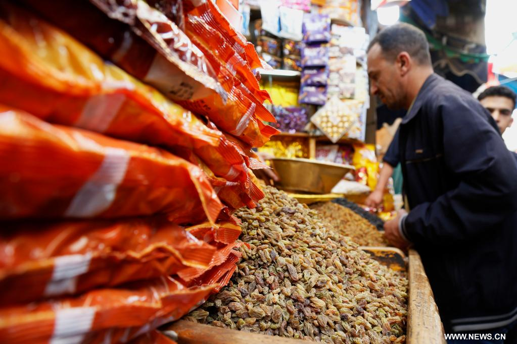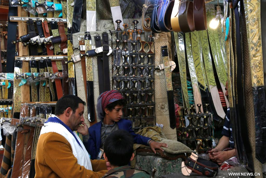 صنعاء 6 يوليو 2022 (شينخوا) في الصورة الملتقطة يوم 6 يوليو 2022، مواطنون يتسوقون لابتياع لوازم تقليدية قبيل عيد الأضحى المقبل في سوق في صنعاء.