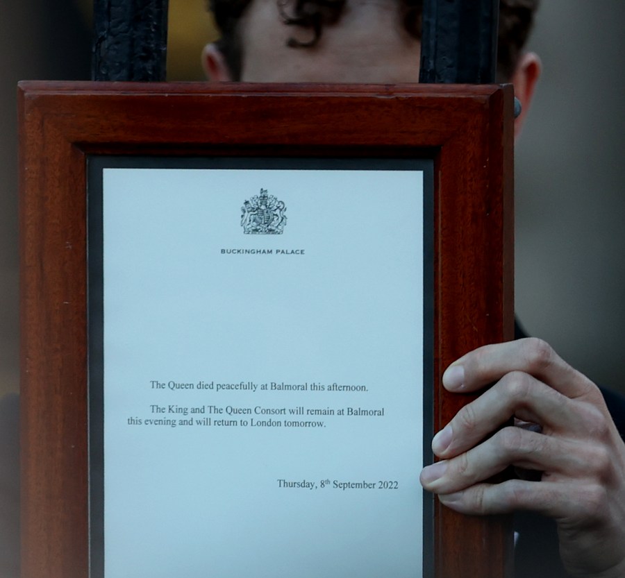 وقال قصر بكنجهام في بيان "تُوفيت الملكة بسلام في بالمورال عصر اليوم."