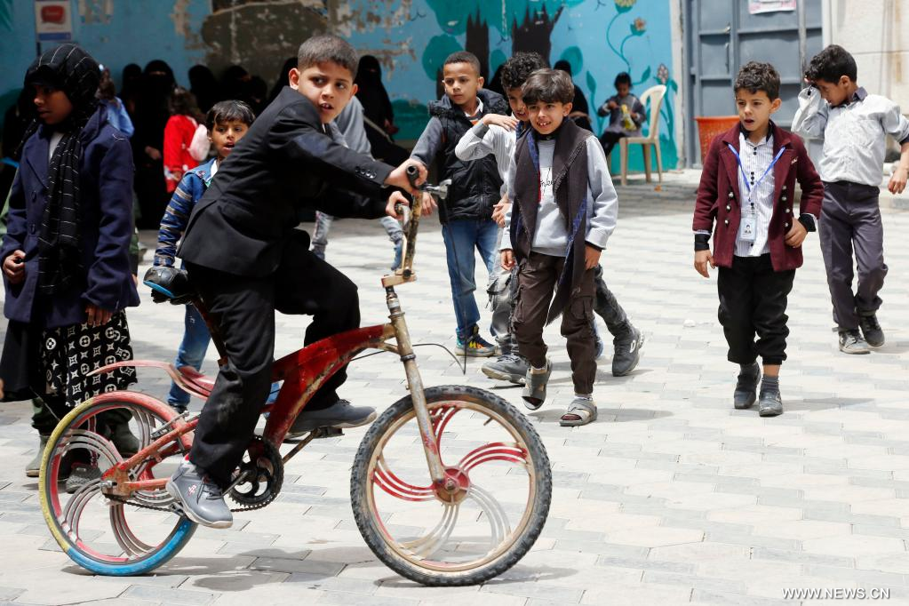 صنعاء 24 سبتمبر 2022 (شينخوا) في الصورة الملتقطة يوم 7 أغسطس 2022، أطفال يلعبون في فناء مركز إعادة تأهيل في العاصمة اليمنية، صنعاء.