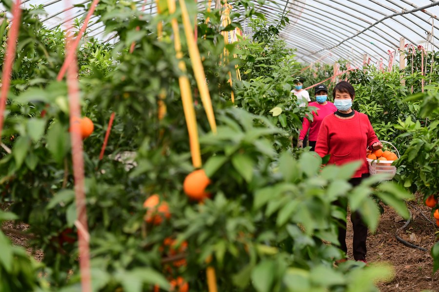 خفي 27 نوفمبر 2022 (شينخوا) في الصور الملتقطة يوم 26 نوفمبر 2022 ، مزارعون يشتغلون بقطف ثمار البرتقال في مجمع للخضروات والفواكه بمحافظة فيشي في مدينة خفي حاضرة مقاطعة آنهوي في شرقي الصين، حيث شهدت المحافظة تطورا مستمرا في زراعة البرتقال وغيره من الفواكه والخضروات المميزة، ما يعزز دخول المزارعين المحليين ويدعم النهوض الريفي.■