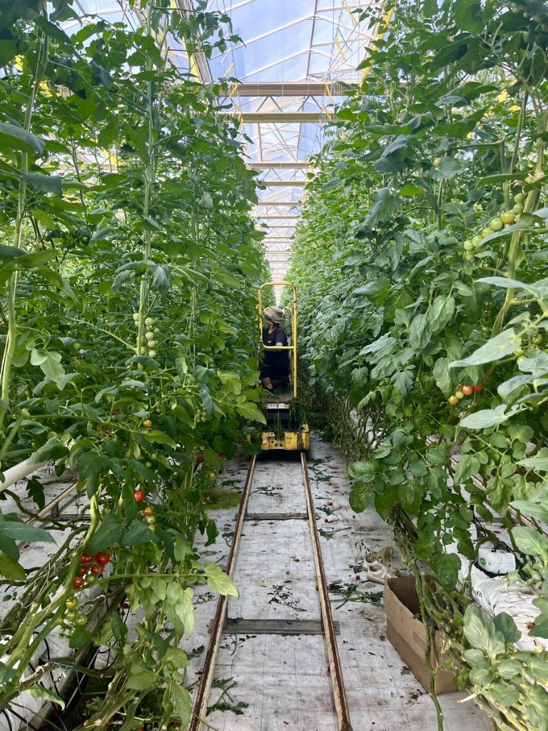 في منطقة زراعة الطماطم، يتم إدخال أنابيب سوداء بشكل موحد في ركائز نمو الطماطم، ثم حقن الماء ومحلول المغذيات فيها. ويمكن تعديل نظام الري عن طريق الكمبيوتر، للتحكم بدقة في توزيع كل قطرة من الماء.