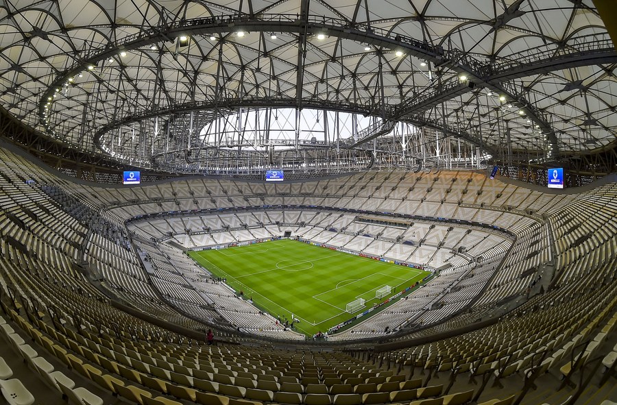 في الصورة الملتقطة يوم 11 أغسطس 2022، مشهد داخلي لاستاد لوسيل، الذي يعتبر استاداً رئيسياً لكأس العالم قطر 2022، ويتسع لـ80 ألف مقعد ويتوقع أن يستضيف المباراة النهائية والحفل الختامي. وقد تم بناؤه من قبل الشركة الصينية لإنشاءات سكك الحديد.