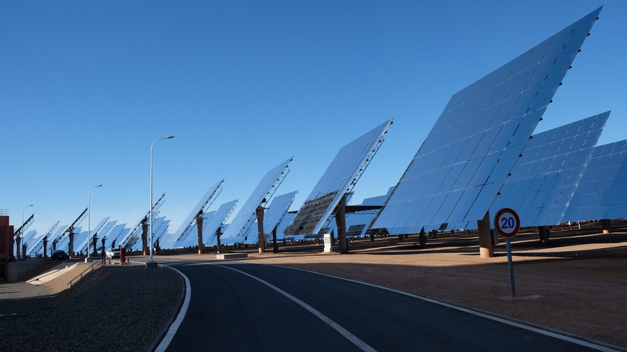 في الصورة الملتقطة يوم 10 يناير 2022، جانب من مجمع "نور" للطاقة الشمسية المركزة في المغرب.