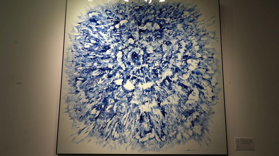 عمل الخزف الأزرق والأبيض من الأستاذ قان داو فو واسمه "تفتُّح". (شينخوا)