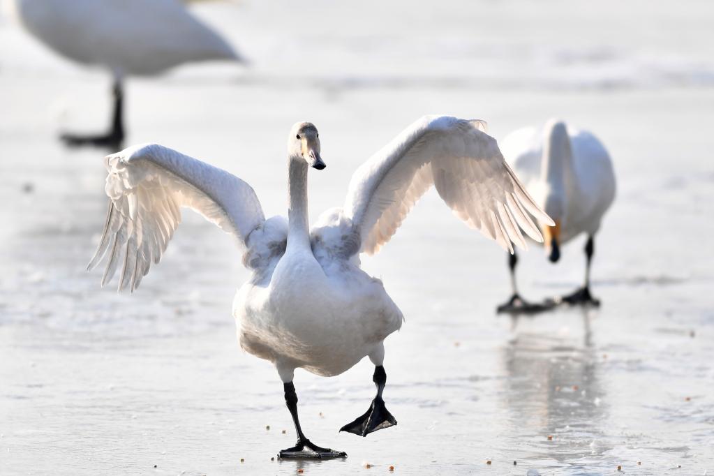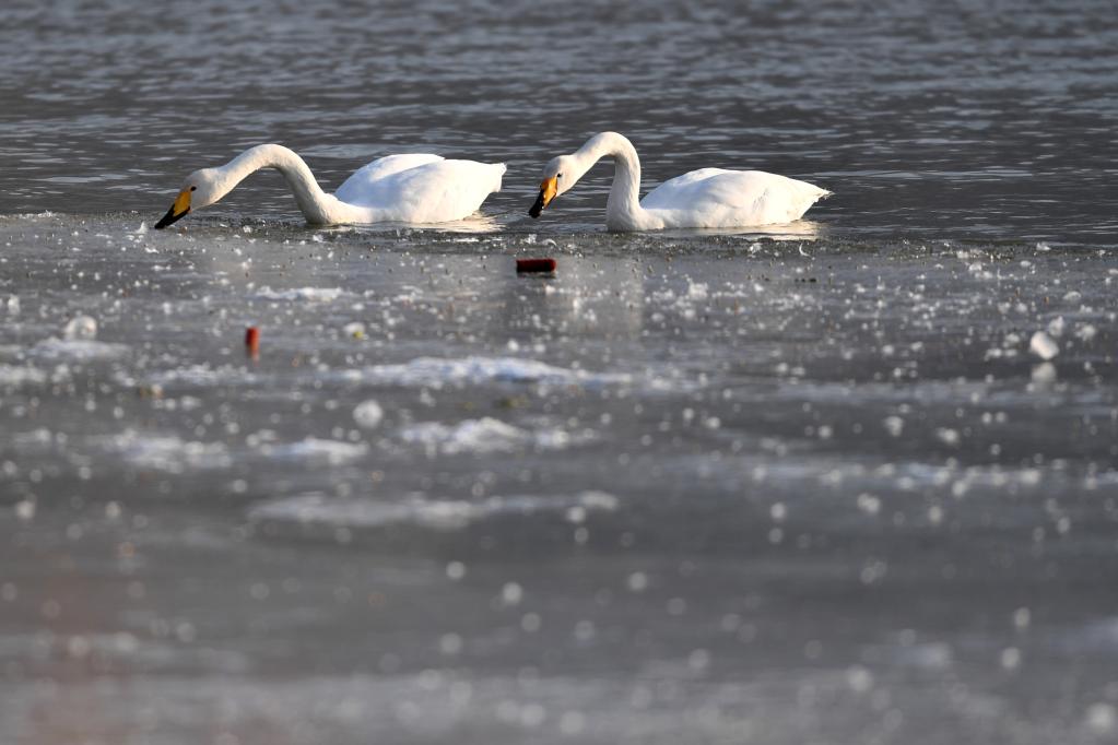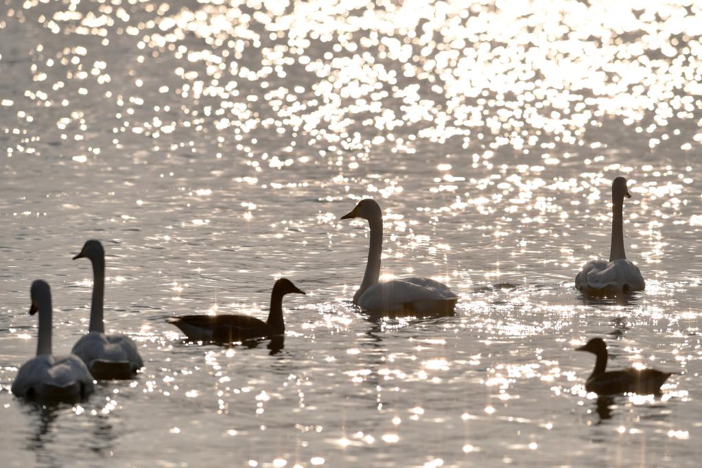 طيور البجع الشتوية في أرض رطبة بشمال غربي الصين