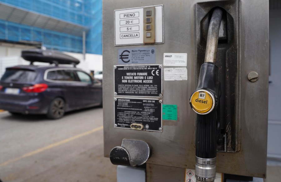 مضخة وقود في محطة بنزين في روما، إيطاليا يوم 2 أبريل 2022. (شينخوا)