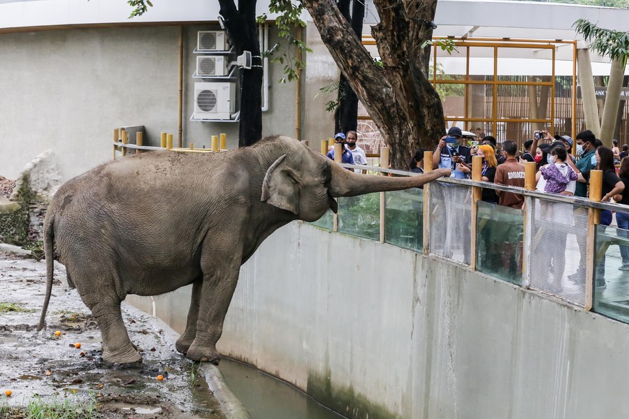 زوار يشاهدون فيلا في حديقة حيوان مانيلا في مانيلا، الفلبين يوم 21 نوفمبر 2022. (شينخوا)
