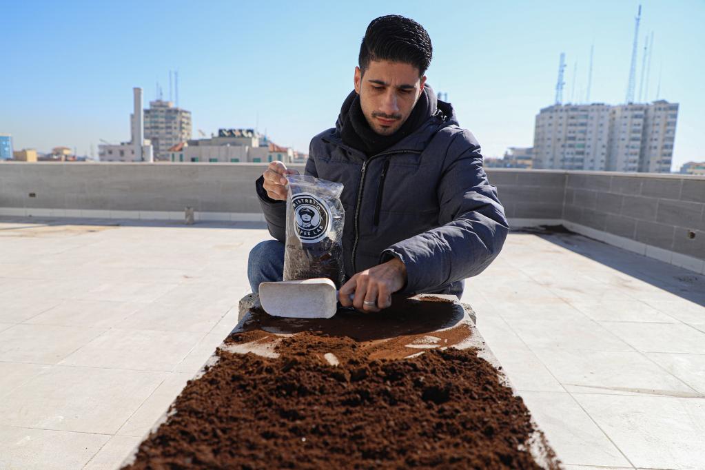 فلسطيني يعيد تدوير رواسب القهوة لاستخدامها كسماد عضوي