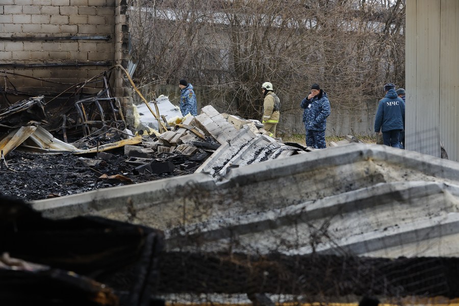 أشخاص يتفقدون آثار قصف سوق المدينة في دونيتسك يوم 12 ديسمبر 2022. (شينخوا)