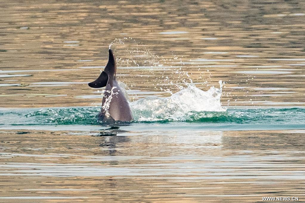 ييتشانغ أول مارس 2023 (شينخوا) في الصورة الملتقطة يوم 19 فبراير 2023، دلفين اليانغتسي بلا زعانف يصطاد الأسماك في نهر اليانغتسي في مدينة ييتشانغ بمقاطعة هوبي وسط الصين. وبحسب مؤتمر صحفي عقد يوم الثلاثاء الماضي، أظهر بحث علمي أجرته وزارة الزراعة والشؤون الريفية الصينية في عام 2022 أن عدد دلافين اليانغتسي بلا زعانف بلغ 1249، بزيادة 23.42 في المائة عن الخمس سنوات الماضية.