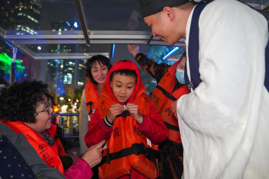 تشنغدو 3 مارس 2023 (شينخوا) في الصورة الملتقطة يوم 28 فبراير 2023، مشهد من السوق الليلي في حي جينجيانغ بمدينة تشنغدو بمقاطعة سيتشوان في جنوب غربي الصين، الذي يجتذب عددا كبيرا من المواطنين المحليين.