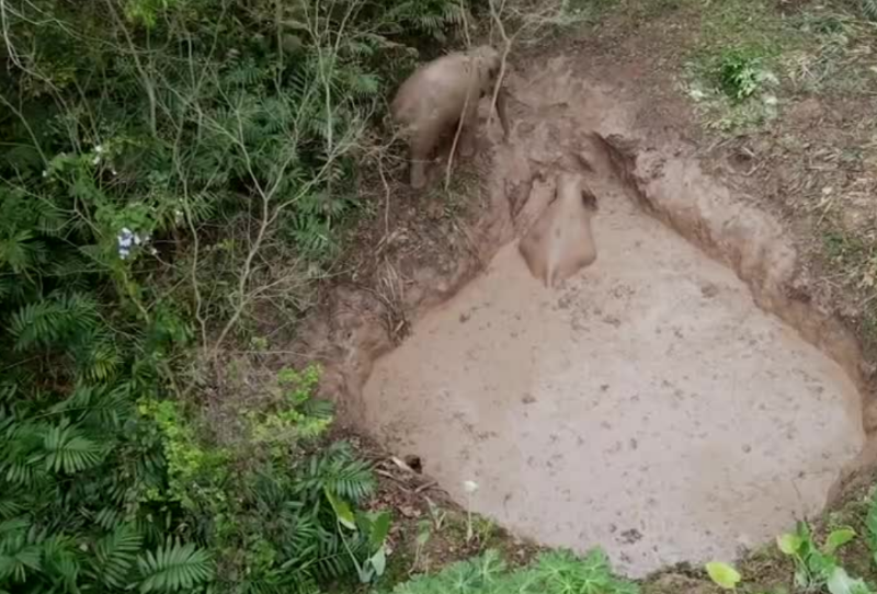 وتلقت الشرطة في مركز شرطة الحدود في بلدة منغمان في ولاية شيشوانغباننا ذاتية الحكم لقومية داي في مقاطعة يوننان، تقريرا صباح يوم الاثنين يفيد بأن قطيعا من الأفيال الآسيوية البرية شوهد يلعب في غابة، لكن أحدها سقط في بركة موحلة.