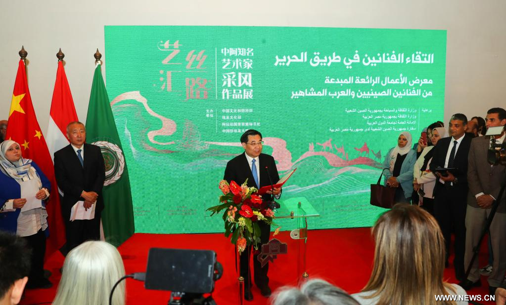 وزيرا الثقافة الصيني والمصري يفتتحان معرض "التقاء الفنانين في طريق الحرير" بالقاهرة