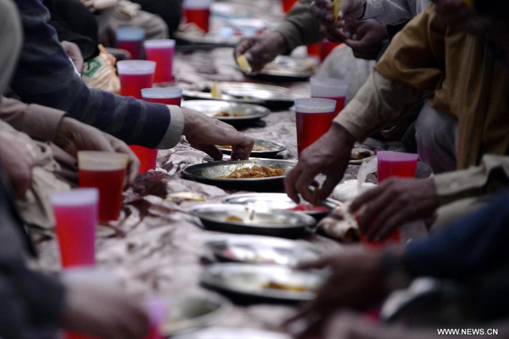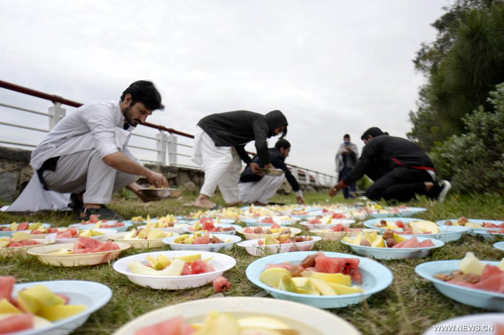 إسلام آباد 7 أبريل 2023 (شينخوا) في الصورة الملتقطة يوم 6 أبريل 2023، باكستانيون يتناولون وجبة الإفطار خلال شهر رمضان في العاصمة الباكستانية إسلام آباد.