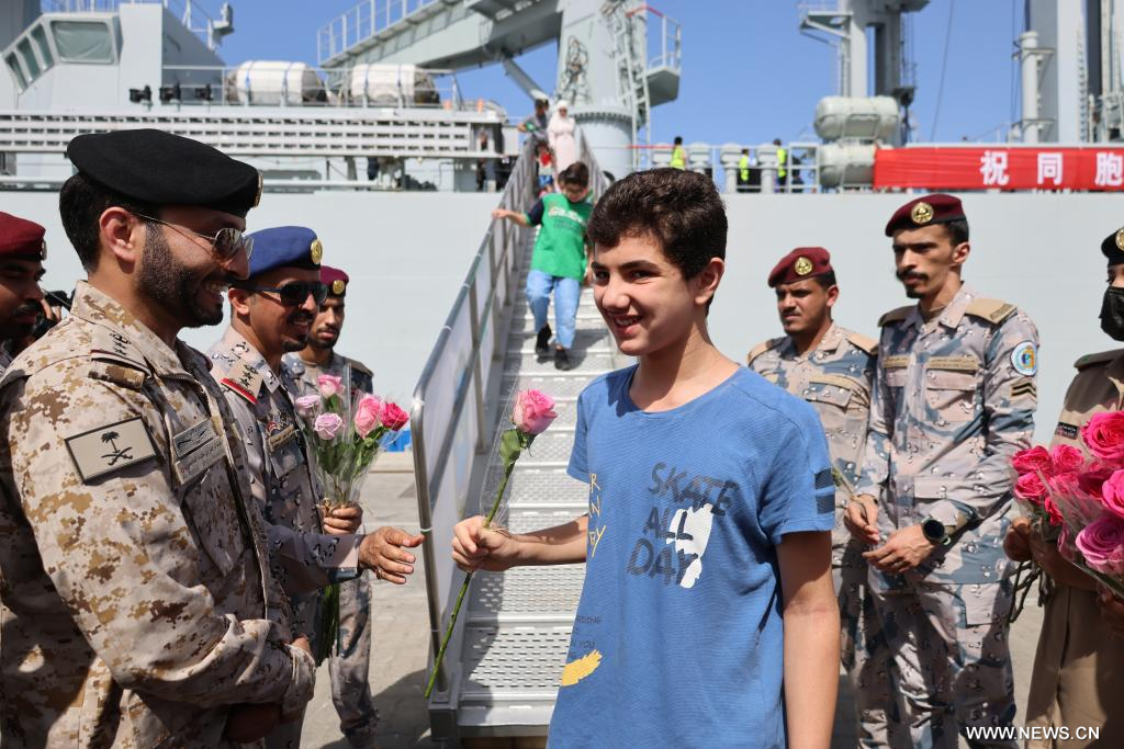نقلت السفينة البحرية الصينية 493 شخصا تم إجلاؤهم من السودان عبر البحر الأحمر إلى السعودية، من بينهم 272 مواطنًا صينيًا و221 أجنبيا.