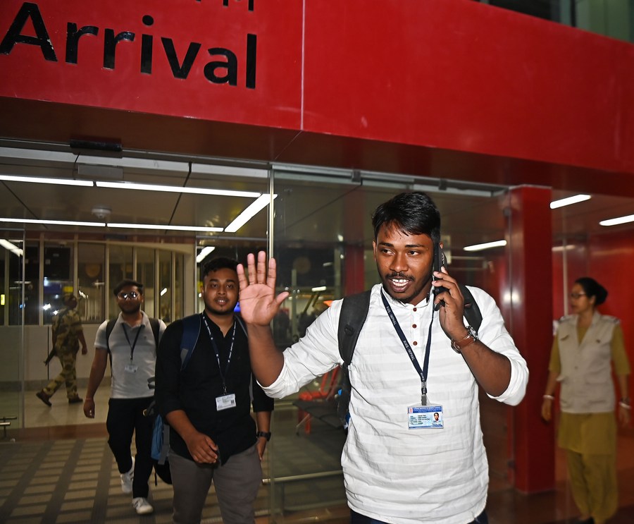 طلاب تم إنقاذهم من أعمال العنف في مانيبور يصلون إلى أغارتالا حاضرة ولاية تريبورا شمال شرقي الهند يوم 7 مايو 2023. (شينخوا)