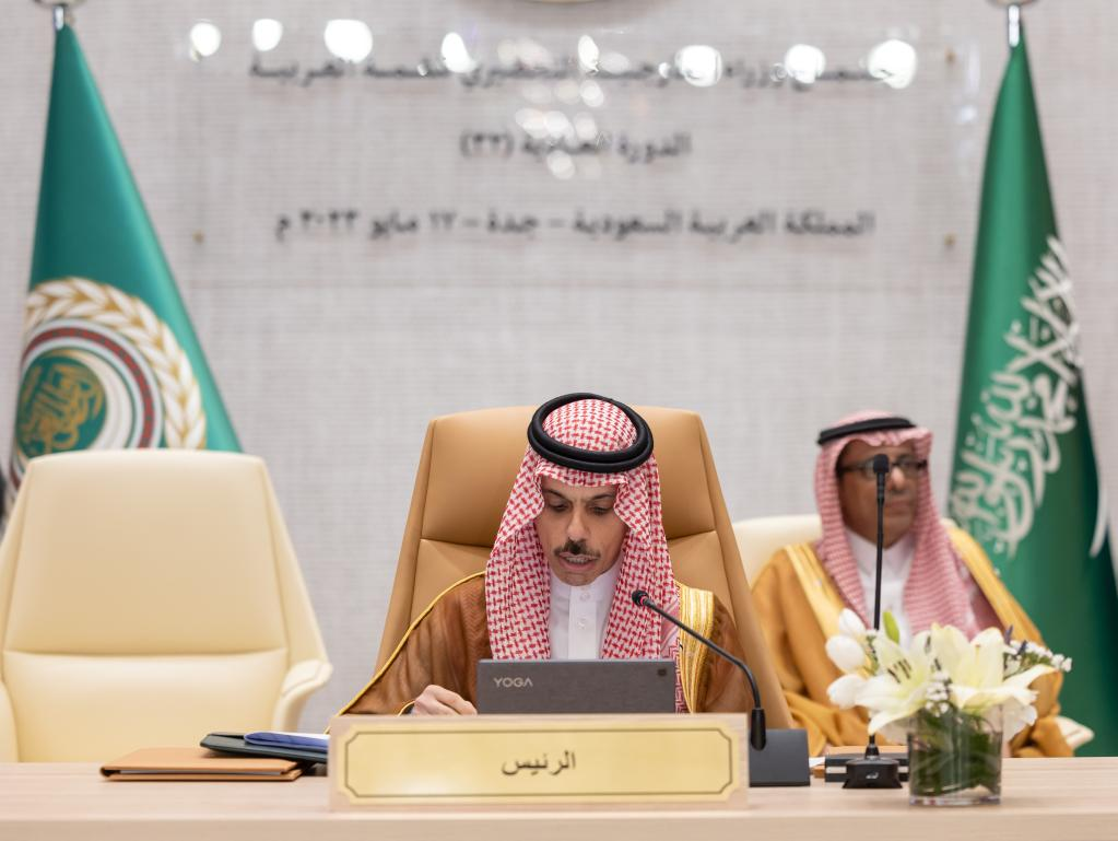 في الصورة الملتقطة يوم 17 مايو 2023، وزير الخارجية السعودي فيصل بن فرحان آل سعود يحضر اجتماع وزراء الخارجية العرب قبل انعقاد قمة جامعة الدول العربية في جدة بالسعودية. اجتمع وزراء الخارجية العرب أمس (الأربعاء) في مدينة جدة بالسعودية قبل انعقاد قمة جامعة الدول العربية السنوية، وفقا لقناة ((العربية)). (وكالة الأنباء السعودية/نشرة عبر شينخوا)
