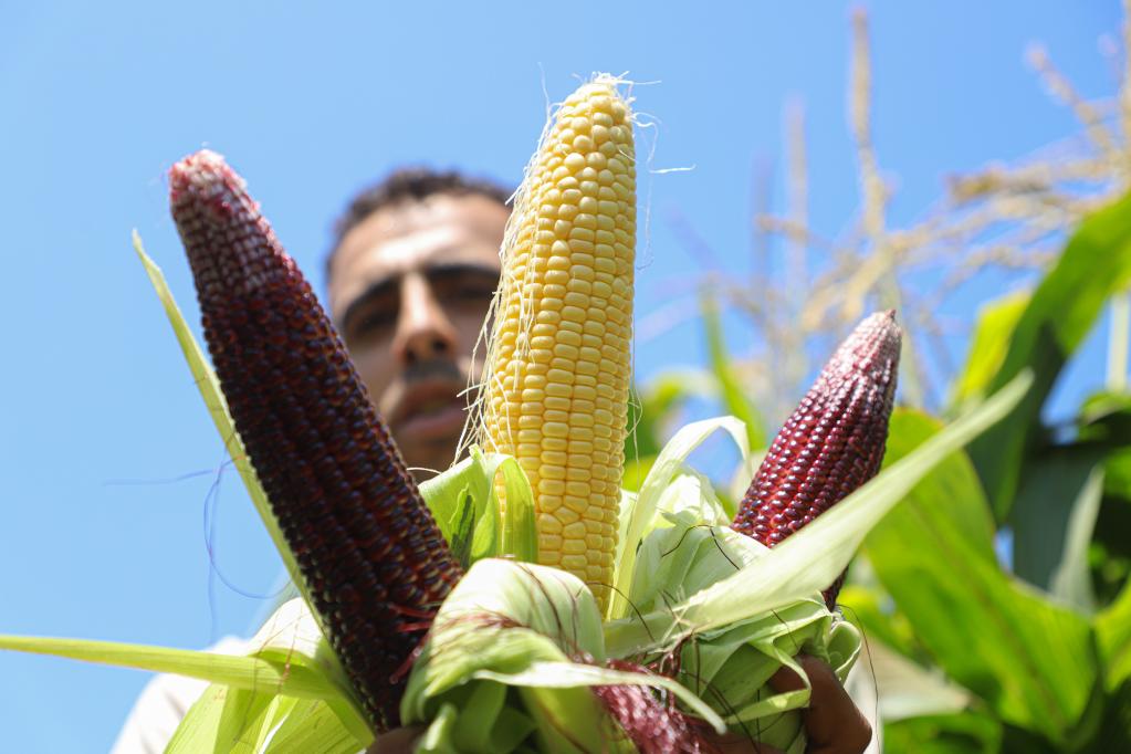 غزة 20 يونيو 2023 (شينخوا) في الصورة الملتقطة يوم 18 يونيو 2023، محمد أبو حليمة يعمل في حقل ذرة في بلدة بيت لاهيا شمالي قطاع غزة.