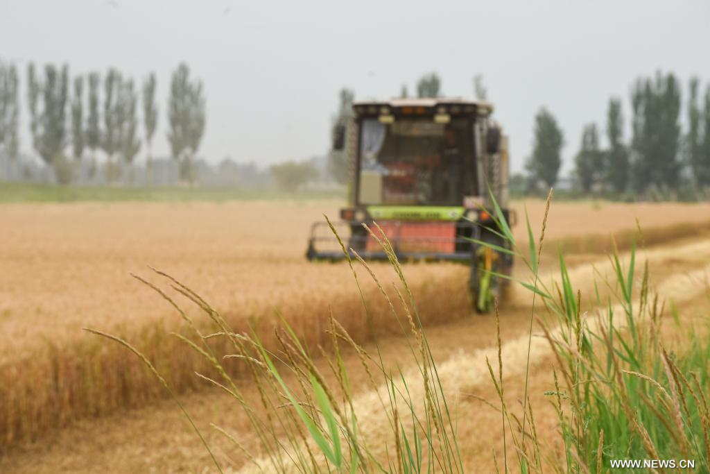 ينتشوان 11 يوليو 2023 (شينخوا) في الصورة الملتقطة يوم 10 يوليو 2023، مزارع يقود حصادة ميكانيكية لحصد محصول القمح في مدينة شيتسويشان بمنطقة نينغشيا الذاتية الحكم لقومية هوي في شمال غربي الصين، حيث يسابق المزارعون المحليون الزمن لحصد القمح الصيفي مع حلول موسم الحصاد.