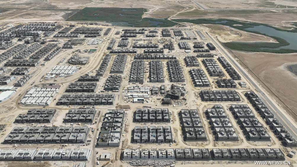 محافظة الأحمدي 9 أغسطس 2023 (شينخوا) في الصورة الملتقطة جوا يوم 6 أغسطس 2023، مشروع إسكان نفذته الصين في الكويت. يقع مشروع الإسكان، الذي تم إنشاؤه بالاشتراك بين شركة ((باور تشاينا)) ومجموعة سكك حديد الصين المحدودة، في محافظة الأحمدي. بإجمالي 597 من المباني السكنية والمتاجر، بالإضافة إلى مرافق البنية التحتية الأخرى، تبلغ المساحة الإجمالية حوالي 630 ألف متر مربع. ومن المقرر اكتمال المشروع في عام 2024.