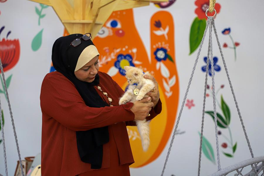 غزة 24 أغسطس 2023 (شينخوا) افتتحت سيدة فلسطينية أول مقهى للقطط في قطاع غزة في محاولة منها لمساعدة محبي تربية الحيوانات الأليفة على الاسترخاء وشحن طاقتهم الإيجابية عبر قضائهم وقتا مع القطط واللعب معها.