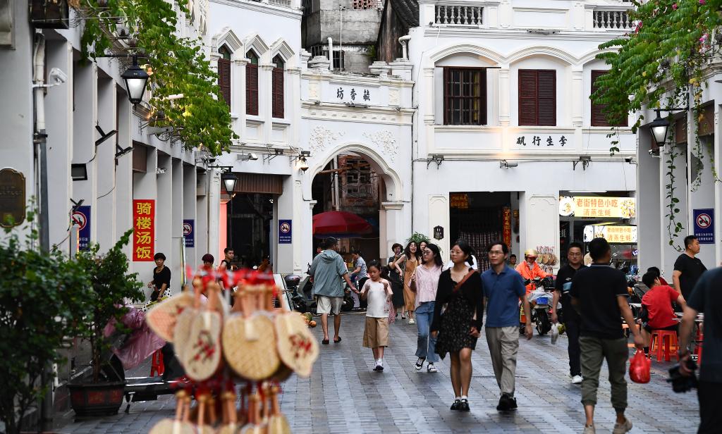هايكو 28 أغسطس 2023 (شينخوا) في الصورة الملتقطة يوم 21 أغسطس 2023، زوار في شارع "تشيلو" القديم في هايكو، حاضرة مقاطعة هاينان بجنوبي الصين.