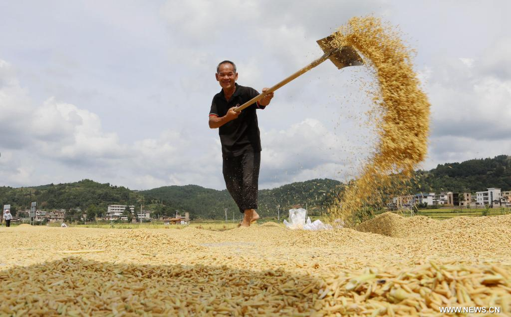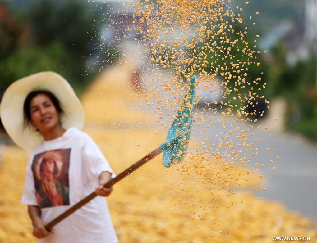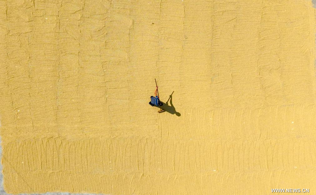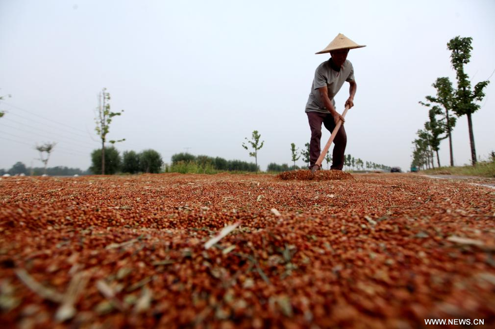 تجفيف الحبوب الغذائية في الخريف بالصين
