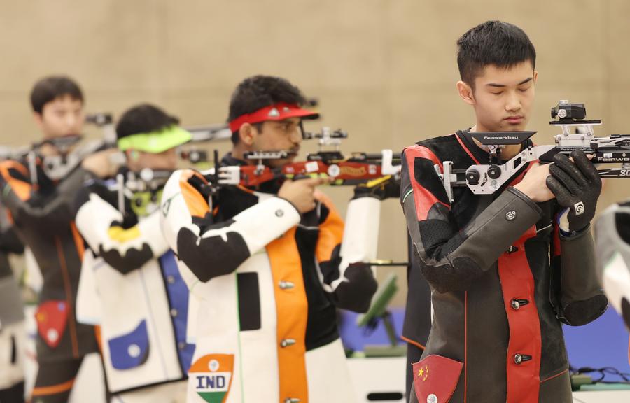 وحصلت الهند على لقب الرماية بالبندقية الهوائية من مسافة 10 أمتار رجال، مسجلة رقما قياسيا عالميا بلغ 1893.7 نقطة، فيما جاءت كوريا الجنوبية في المركز الثاني لتحصل على الميدالية الفضية بتسجيلها 1890.1 نقطة، وحصل الفريق الصيني المكون من شنغ ودو ويوي هاو نان على الميدالية البرونزية بتسجيله 1888.2 نقطة.■