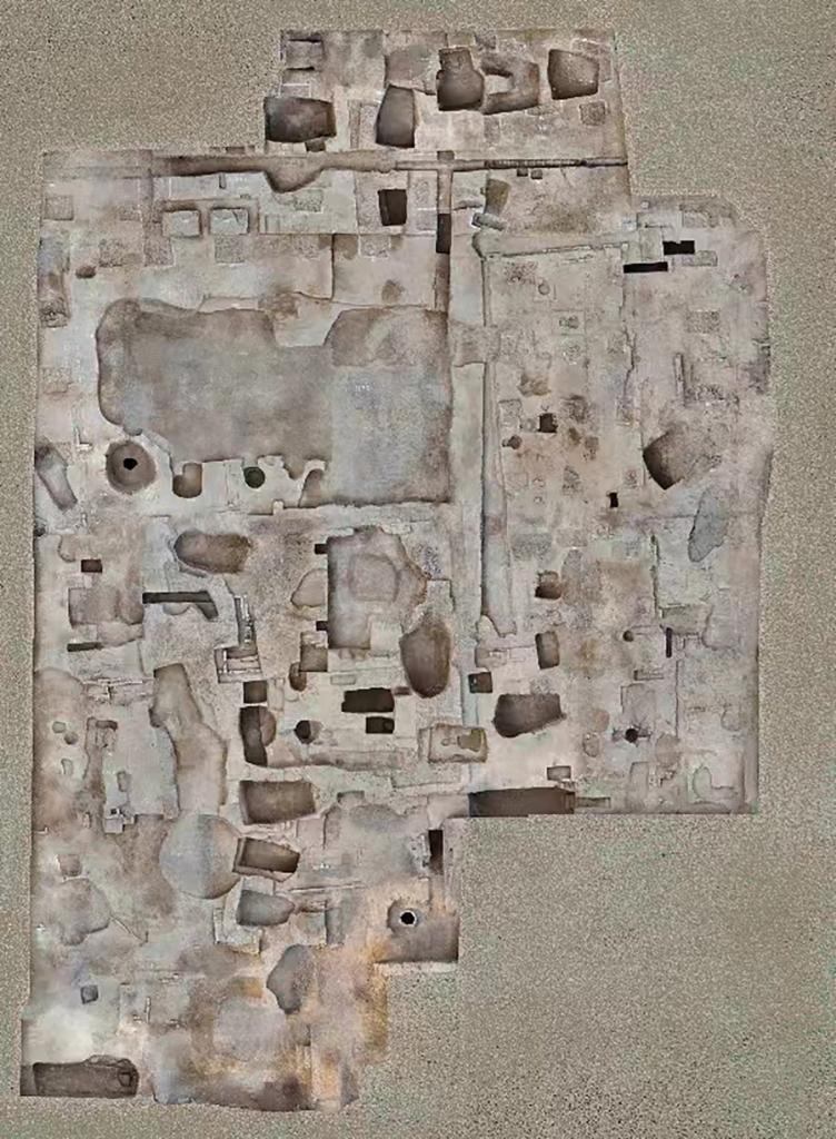 في الصورة الملتقطة يوم 28 سبتمبر 2023، منظر بانورامي لموقع أساسات المباني في أنقاض تشونغدو، عاصمة أسرة جين (1115-1234) في بكين. (صورة مقدمة من الهيئة الوطنية للتراث الثقافي)