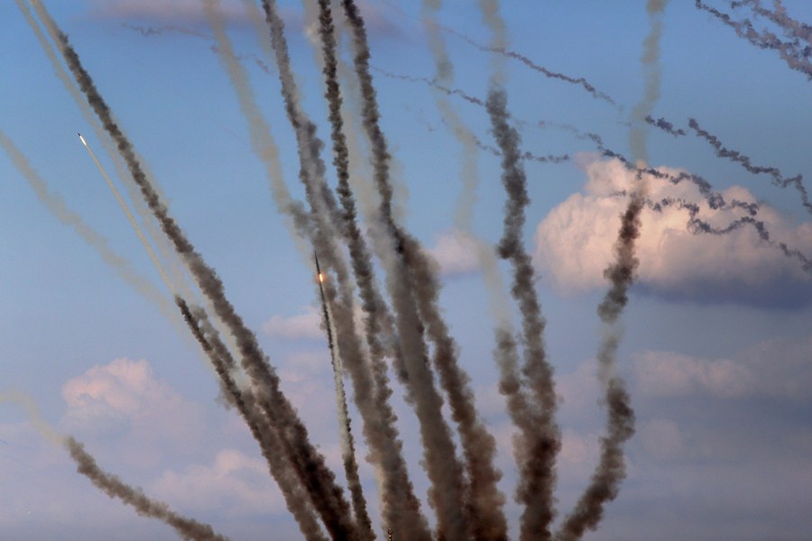 إطلاق رشقات من الصواريخ من غزة باتجاه إسرائيل فوق مدينة غزة في 10 أكتوبر 2023. (شينخوا)