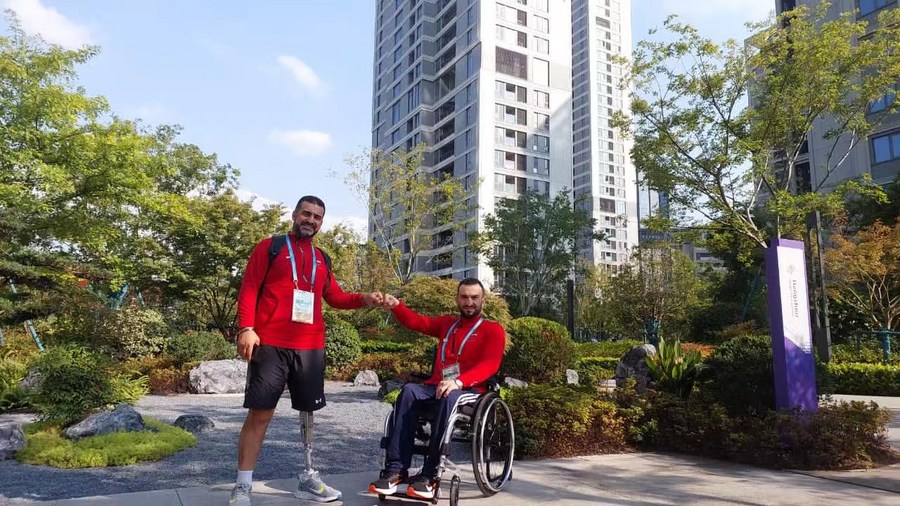 الرياضيان السوريان فراس شيحة وعيسى حسن في مدينة هانغتشو الصينية للمشاركة في دورة الألعاب البارالمبية الآسيوية الرابعة