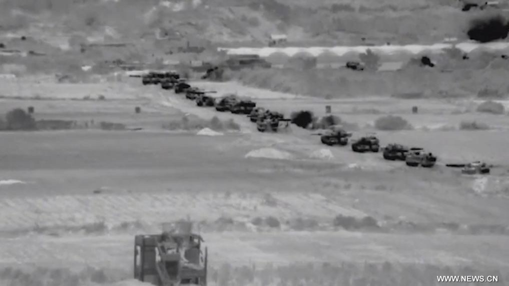 القدس 28 أكتوبر 2023 (شينخوا) في لقطة الشاشة المأخوذة يوم 27 أكتوبر 2023 من مقطع فيديو نشره جيش الدفاع الإسرائيلي، القوات الإسرائيلية في عملية برية في قطاع غزة.