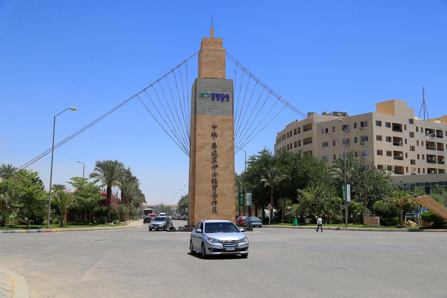 هذه الصورة الملتقطة في 19 يوليو 2023 تظهر بوابة منطقة تيدا السويس للتعاون الاقتصادي والتجاري بين الصين ومصر في محافظة السويس بمصر (شينخوا)
