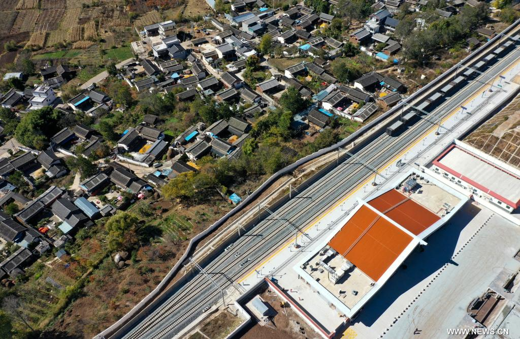 ديتشينغ 26 نوفمبر 2023 (شينخوا) في الصورة الملتقطة جوا يوم 25 نوفمبر 2023، مشهد لمحطة لاشيهاي للسكك الحديدية ضمن خط سكة حديد ليجيانغ-شانغريلا في مقاطعة يوننان بجنوب غربي الصين. ويفتتح اليوم الأحد أمام حركة المرور خط سكة حديد ليجيانغ-شانغريلا، الذي يربط بين ليجيانغ وشانغريلا في المقاطعة.