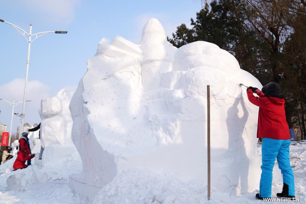 انطلاق مسابقة دولية لنحت الثلج شمال شرقي الصين