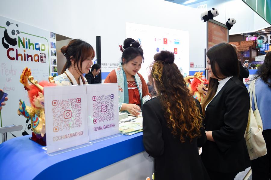 أناس يزورون الجناح الصيني ضمن فعاليات معرض السياحة الدولي 2024 في مدريد بإسبانيا في 24 يناير 2024. (شينخوا)