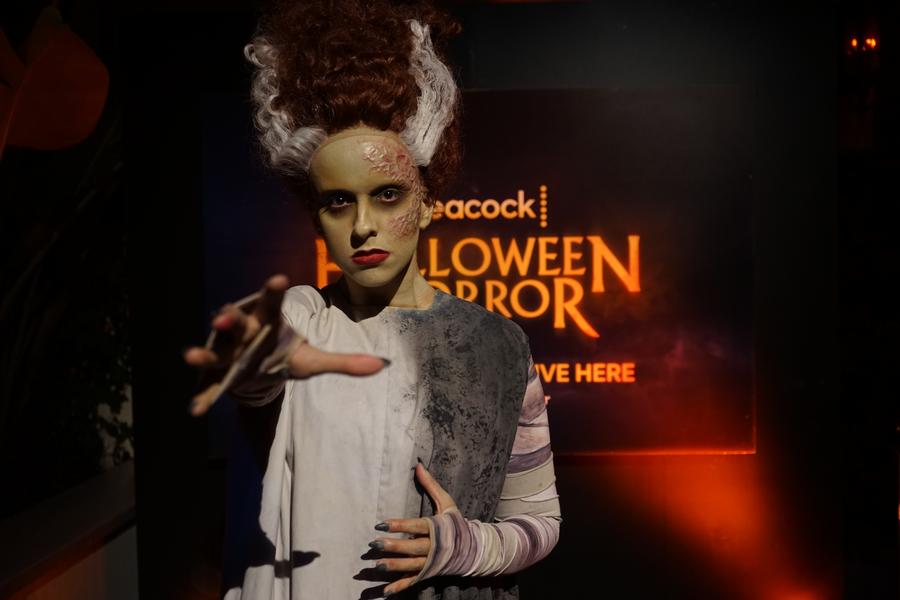 عاملة بملابس الهالوين في ليلة افتتاح ليالي رعب الهالوين في يونيفرسال ستوديوز هوليود في لوس أنجليس، كاليفورنيا، الولايات المتحدة يوم 7 سبتمبر 2023. (شينخوا)