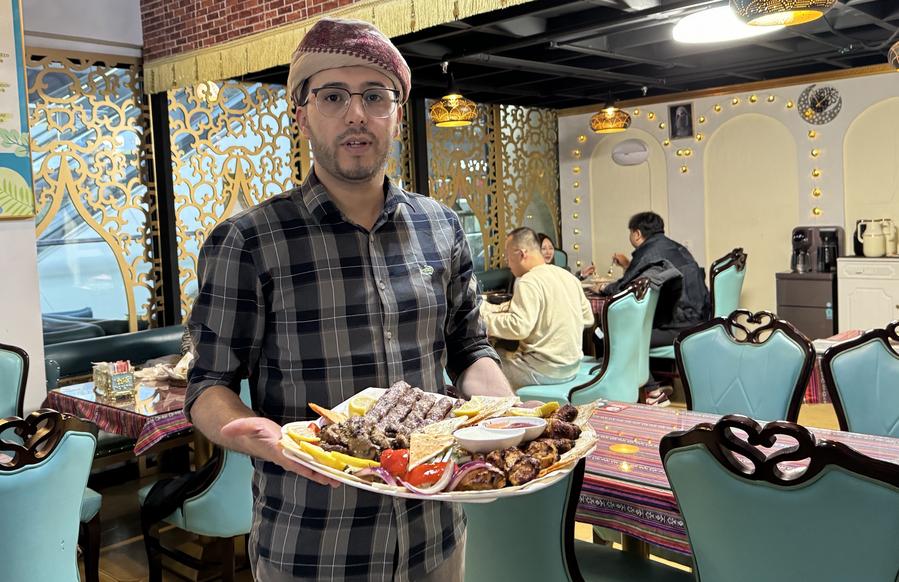 تيانجين 22 مارس 2024 (شينخوا) لم يمض وقت طويل منذ بدء استقبال المطعم الضيوف وقت الظهيرة، قدم عدد كبير من الزبائن إليه. وكان صاحب المطعم محي الدين القحطاني يعمل، متنقلا بين الطاولات بسرعة، في خدمة الضيوف وإحضار الأطباق الطازجة لهم.