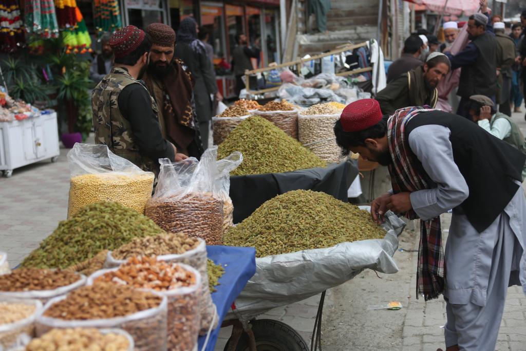 كابول 26 مارس 2024 (شينخوا) في الصورة الملتقطة يوم 26 مارس 2024، أشخاص يشترون الفواكه المجففة خلال شهر رمضان في كابول، عاصمة أفغانستان.