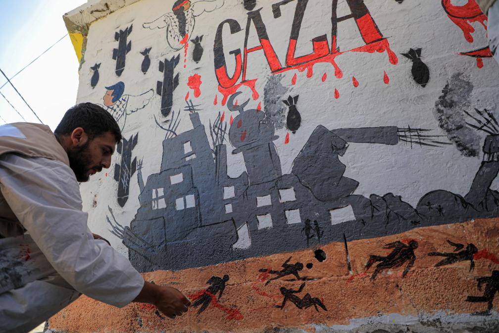 الصورة: رسوم جدارية تصور الحرب في غزة