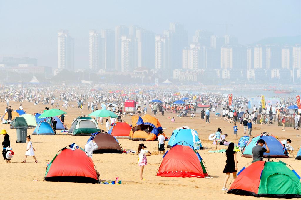 تشينغداو 2 يوليو 2024 (شينخوا) في الصورة الملتقطة يوم أول يوليو 2024، زوار يصطافون على شاطئ بمدينة تشينغداو في مقاطعة شاندونغ بشرقي الصين. وخلال موسم الصيف، يستمتع المواطنون والزوار بالأنشطة البحرية، مما يعكس ازدهار السياحة المحلية في المنطقة.