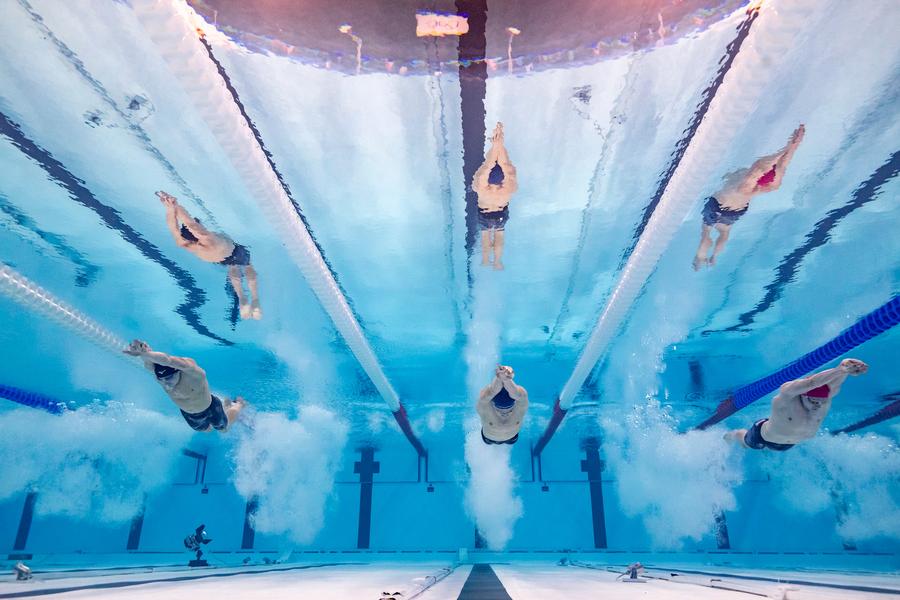 وفي منافسات السباحة، انتزع البطل الفرنسي مارشان ميداليته الذهبية الرابعة في سباق 200 متر فردي متنوع للرجال، وسجل رقما قياسيا أولمبيا جديدا قدره دقيقة واحدة و54.06 ثانية، متقدما بأكثر من ثانية على البريطاني دنكان سكوت الحائز على الميدالية الفضية. وحصل حامل اللقب الصيني وانغ شون على الميدالية البرونزية، بفارق ثانيتين تقريبا.