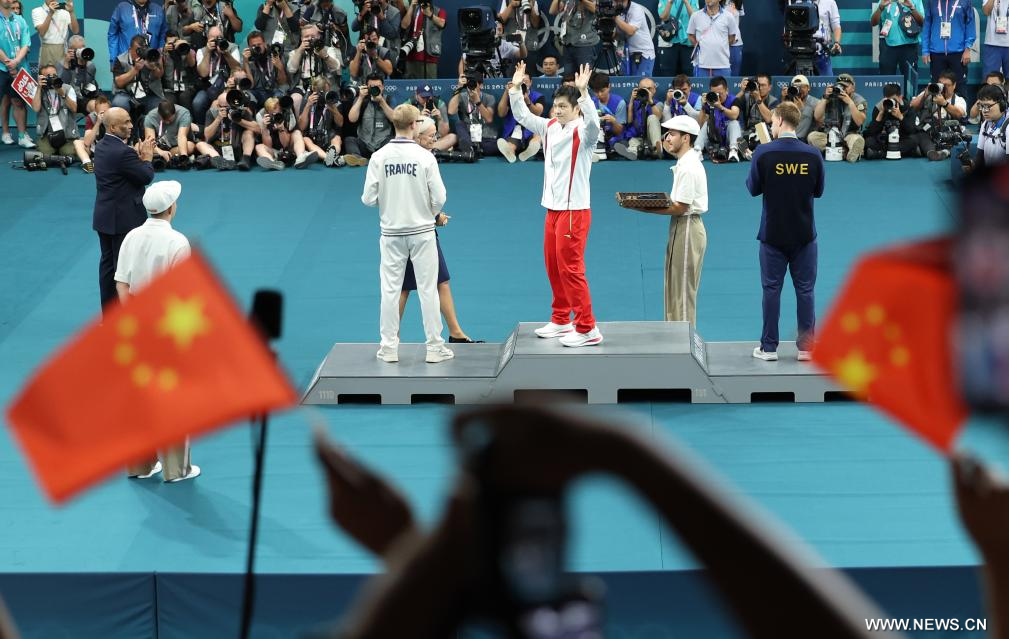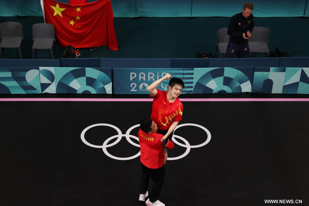 باريس 4 أغسطس 2024 (شينخوا) تغلب الصيني فان تشن دونغ على السويدي ترولس موريجارد بنتيجة 4-1، ليحرز الميدالية الذهبية في منافسات تنس الطاولة فردي رجال بدورة الألعاب الأولمبية باريس 2024 اليوم (الأحد).