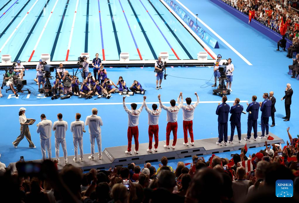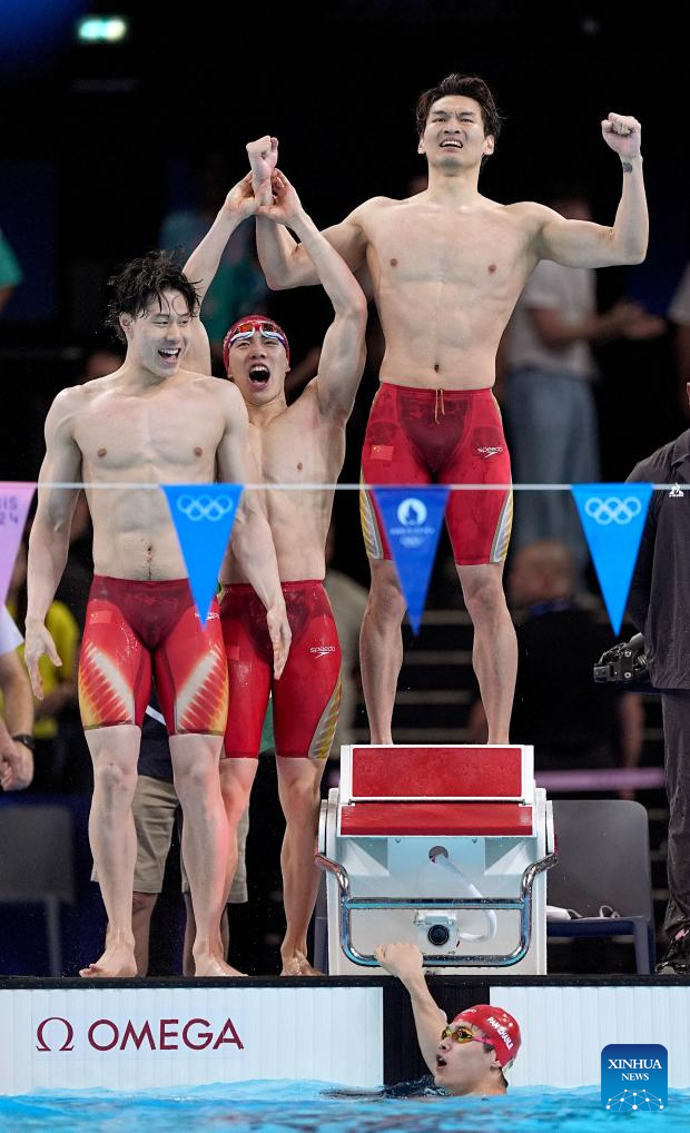 الصين تفوز بالميدالية الذهبية في سباق التتابع 4×100 متر متنوع للسباحة فئة الرجال في أولمبياد باريس