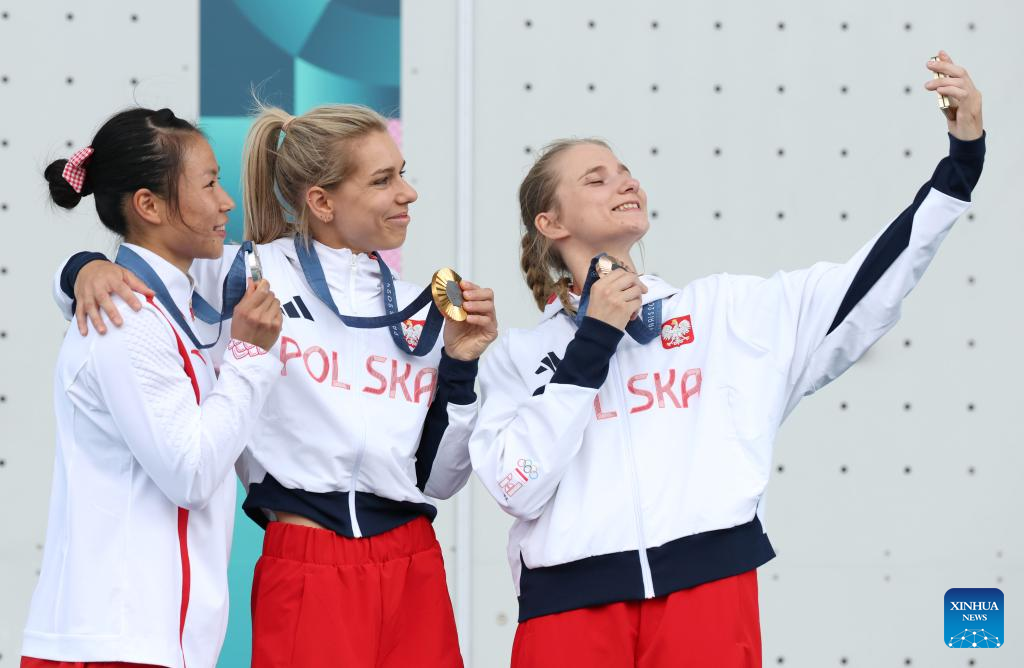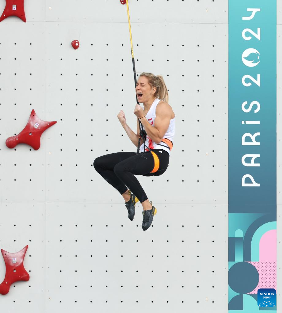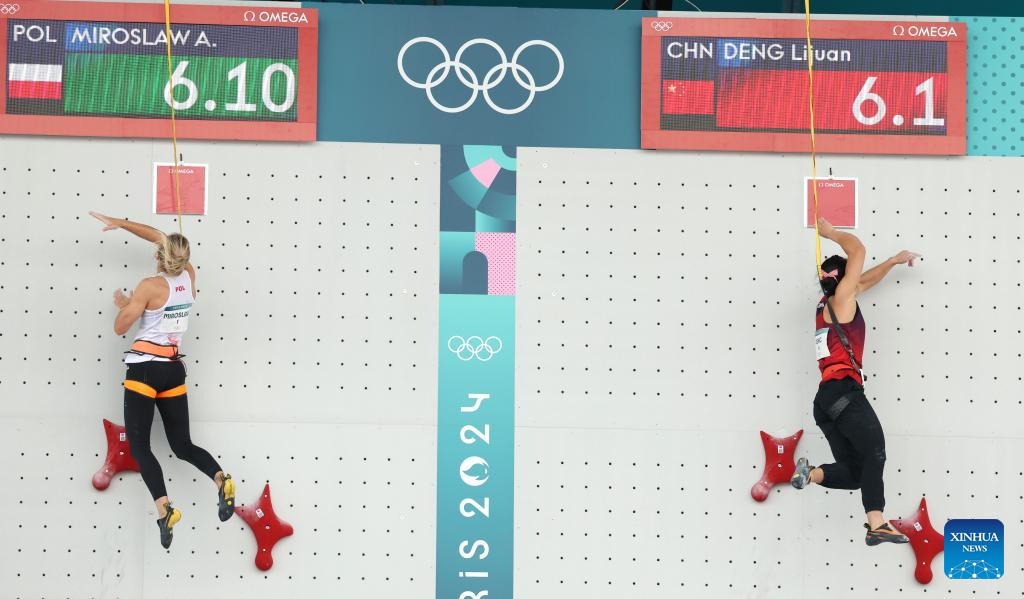 باريس 7 أغسطس 2024 (شينخوا) تغلبت البولندية ألكسندرا ميروسلاف، على الصينية دنغ لي جيوان، لتفوز بالميدالية الذهبية في سباق التسلق السريع للسيدات في النسخة الأولمبية الأولى من هذا السباق، في أولمبياد باريس 2024، هنا اليوم (الأربعاء).