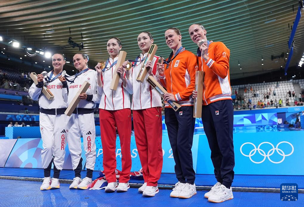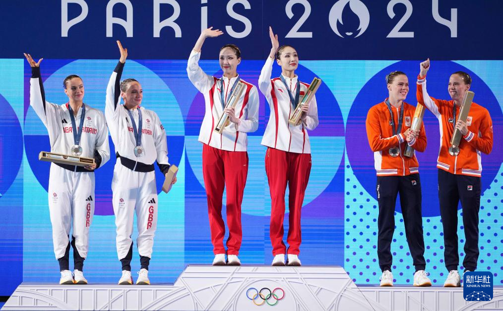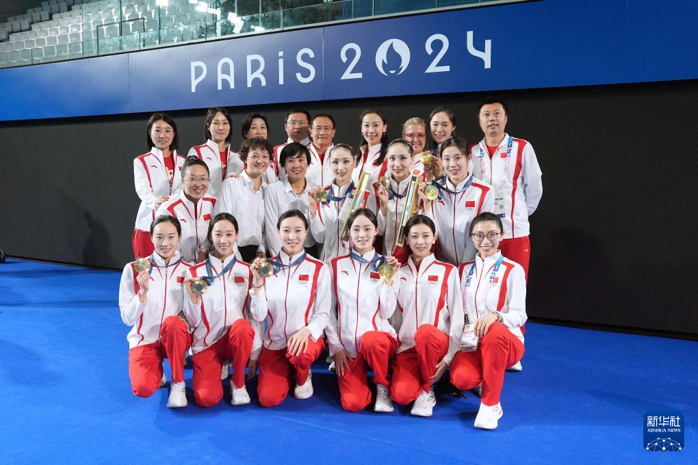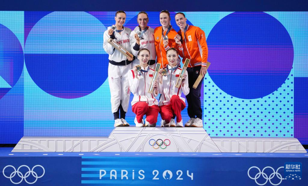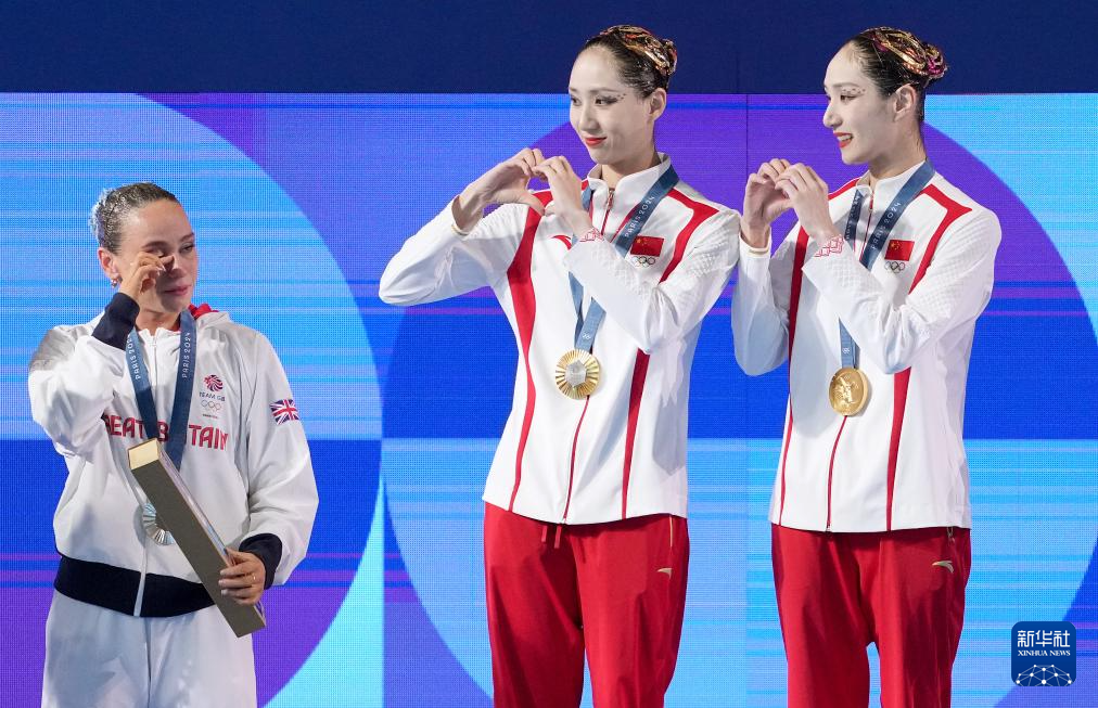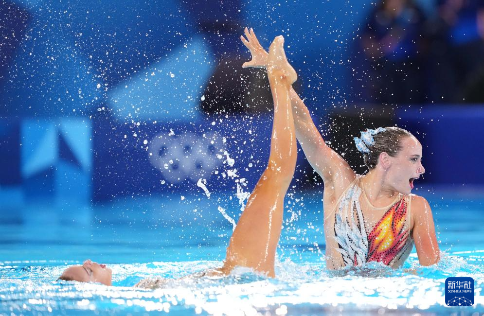 باريس 10 أغسطس 2024 (شينخوا) فازت بطلتا العالم وانغ ليو يي ووانغ تشيان يي بأول ميدالية ذهبية أولمبية للصين في منافسات السباحة الفنية (زوجي) في أولمبياد باريس اليوم (السبت).