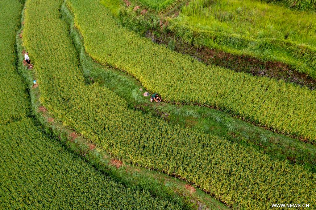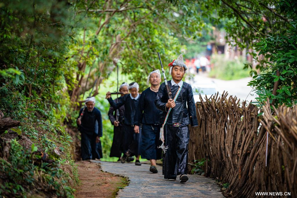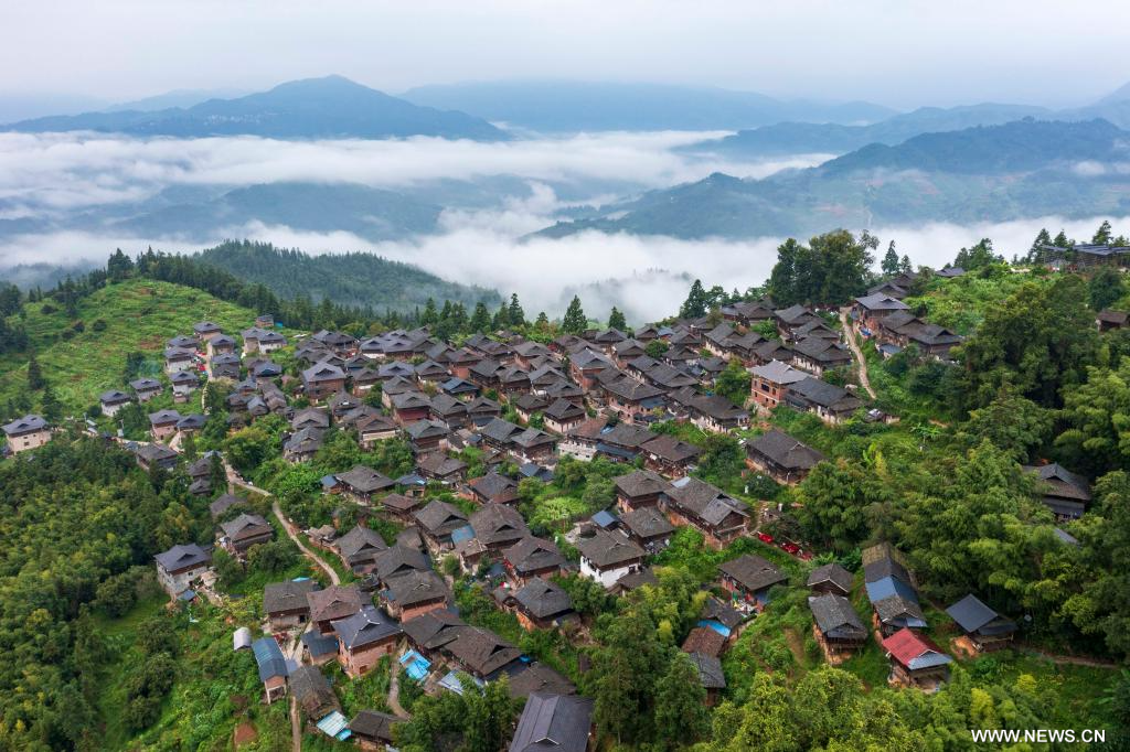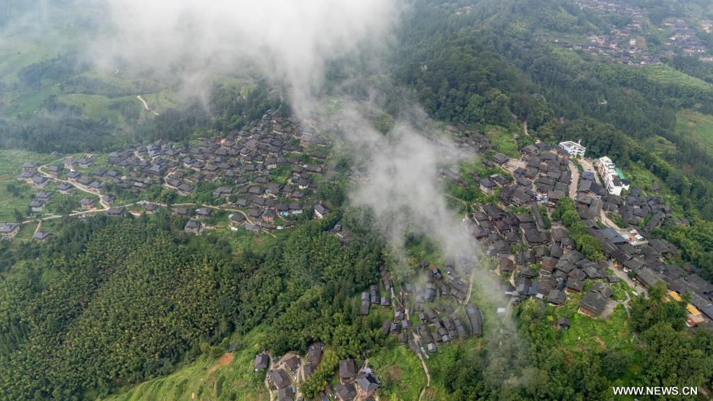 تسونغجيانغ 18 أغسطس 2024 (شينخوا) في الصورة الملتقطة من الجو يوم 17 أغسطس 2024، مشهد لقرية باشا في محافظة تسونغجيانغ بولاية تشياندونغنان ذاتية الحكم لقوميتي مياو ودونغ بمقاطعة قويتشو جنوب غربي الصين.